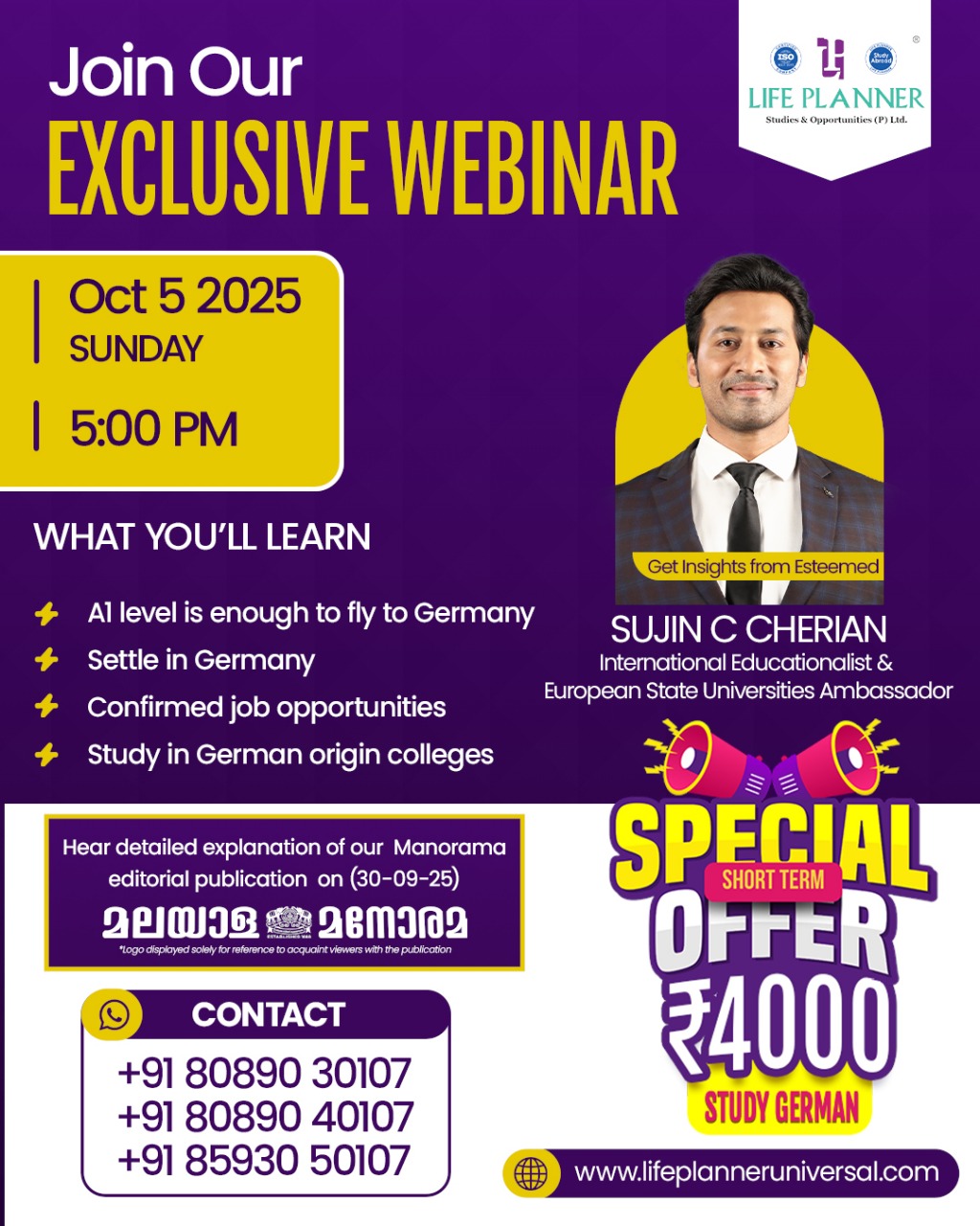 Life Planner, founded in 2012, has blossomed from a small start-up into a trusted name in the world of educational consulting for study abroad in Kottayam. With our ISO certification, we’ve built a solid reputation for delivering reliable and personalized services.