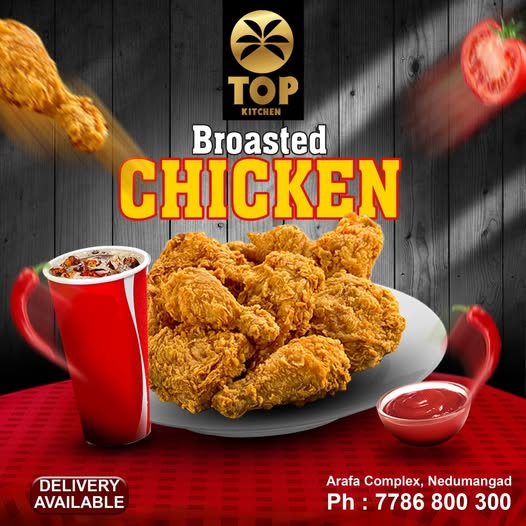 **Top Kitchen & Bakes** is a beloved multi-cuisine restaurant nestled in the heart of Nedumangadu, Thiruvananthapuram, right in the ARAFA Complex next to ARAFA Gold & Diamond. For over three years, this spot has been a favorite among locals, renowned for its varied menu and delicious food. Diners can indulge in a range of dishes, from mouthwatering biryanis like chicken and mutton to fried rice and noodles, along with Arabian delights such as mandi, kebabs, shawarma, and grilled specialties. But that’s not all—Top Kitchen & Bakes also whips up Indian and Chinese favorites, including paneer butter masala, gobi manchurian, and a selection of curries. If you’re in the mood for something lighter, you can choose from pizzas, sandwiches, ice creams, and refreshing drinks. Customers rave about the restaurant’s affordable prices, quick service, and consistently tasty offerings, especially the biryani and Arabian dishes.