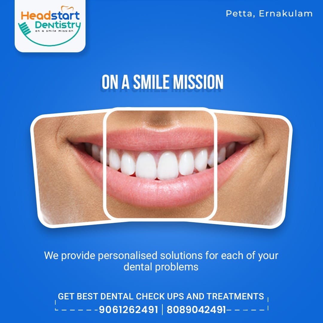 Headstart Dentistry – Pediatric and Family Dental Clinic is a modern dental care center located in Maradu, Kochi, dedicated to providing comprehensive oral health services for children and families. The clinic combines advanced dental technology with a warm, child-friendly environment to ensure a comfortable and stress-free experience for patients of all ages. Specializing in pediatric dentistry, preventive care, cosmetic treatments, and general dental services, Headstart Dentistry focuses on creating healthy smiles and promoting lifelong oral hygiene habits. With experienced dentists, personalized treatment plans, and a caring approach, the clinic strives to make every visit positive, safe, and family-oriented.