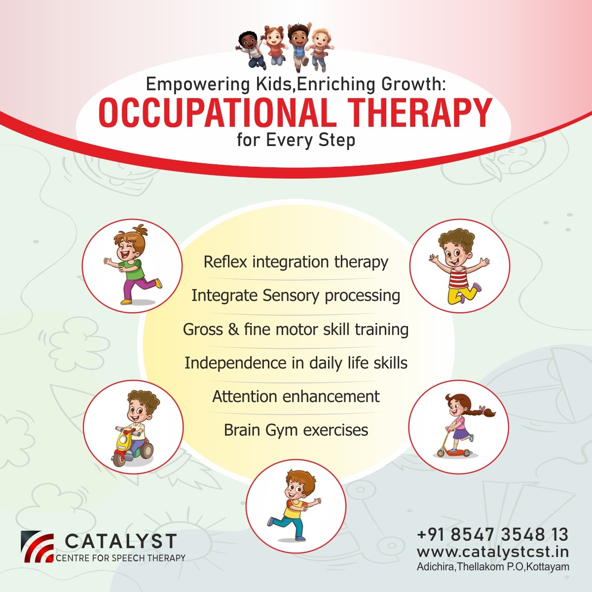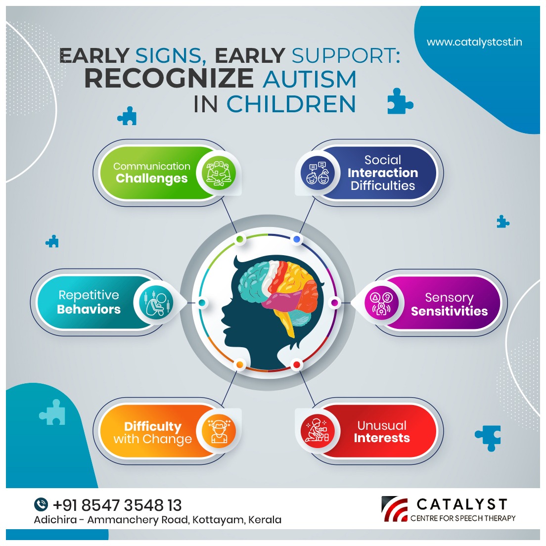 ‘Catalyst Centre for Speech Therapy’ was formed in 2017 with the aim of acting as a catalyst in nurturing the Communication abilities of special needs children. Over the years, Catalyst has grown into a multi-disciplinary organization and a leading centre in India to provide the essential services to comprehensive specialized training for child development under one roof with qualified experienced & licenced professionals.