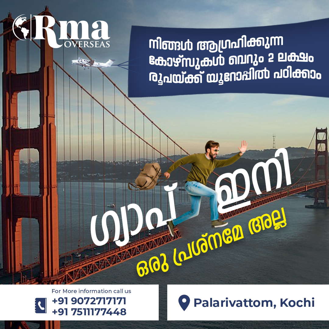 RMA Overseas is a study abroad consultancy located in Kochi, Kerala, dedicated to helping students navigate their educational journeys and visa applications for countries like the UK, Canada, Australia, and New Zealand. They provide a range of services, from university admissions (sometimes even without requiring IELTS) to visa processing, and they’re known for their expertise in placements and managing the often complicated process of pursuing international education. While many reviews highlight their success in securing visas, there are some signs that certain branches may have closed, leading to a mixed online presence. RMA Overseas aims to support both students and professionals in chasing international opportunities, offering services like study abroad counseling, university and course selection, admission processing, visa assistance, and career guidance. Their goal is to deliver reliable, transparent, and personalized support throughout the overseas application journey.