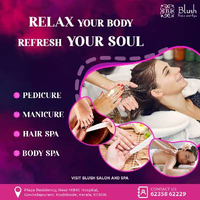 Blush Salon & Spa is a modern beauty and wellness lounge dedicated to delivering a complete range of grooming, styling, and relaxation services in a luxurious yet welcoming environment. Known for its professional expertise and personalized approach, the salon offers everything from trendy haircuts, coloring, and advanced hair treatments to bridal makeovers, facials, manicures, pedicures, and nail care. The spa section provides soothing therapies and body treatments that help rejuvenate both mind and body, creating the perfect balance between beauty and relaxation. Every service at Blush is carried out with premium-quality products and strict hygiene standards, ensuring clients not only look their best but also feel refreshed and confident. With its calming ambiance, skilled staff, and customer-focused care, Blush Salon & Spa is the go-to destination for those who value elegance, comfort, and self-care all in one place.