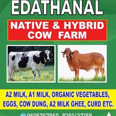 Edathanal Farm – Native & Hybrid Cow Farm is a unique agricultural destination that combines traditional farming values with modern dairy practices. Nestled in a serene rural setting, the farm is home to carefully nurtured native and hybrid cow breeds, raised in a natural and healthy environment. With a strong focus on animal welfare and sustainable practices, Edathanal Farm ensures that every product—from fresh milk to dairy-based goods—reflects purity, nutrition, and quality.