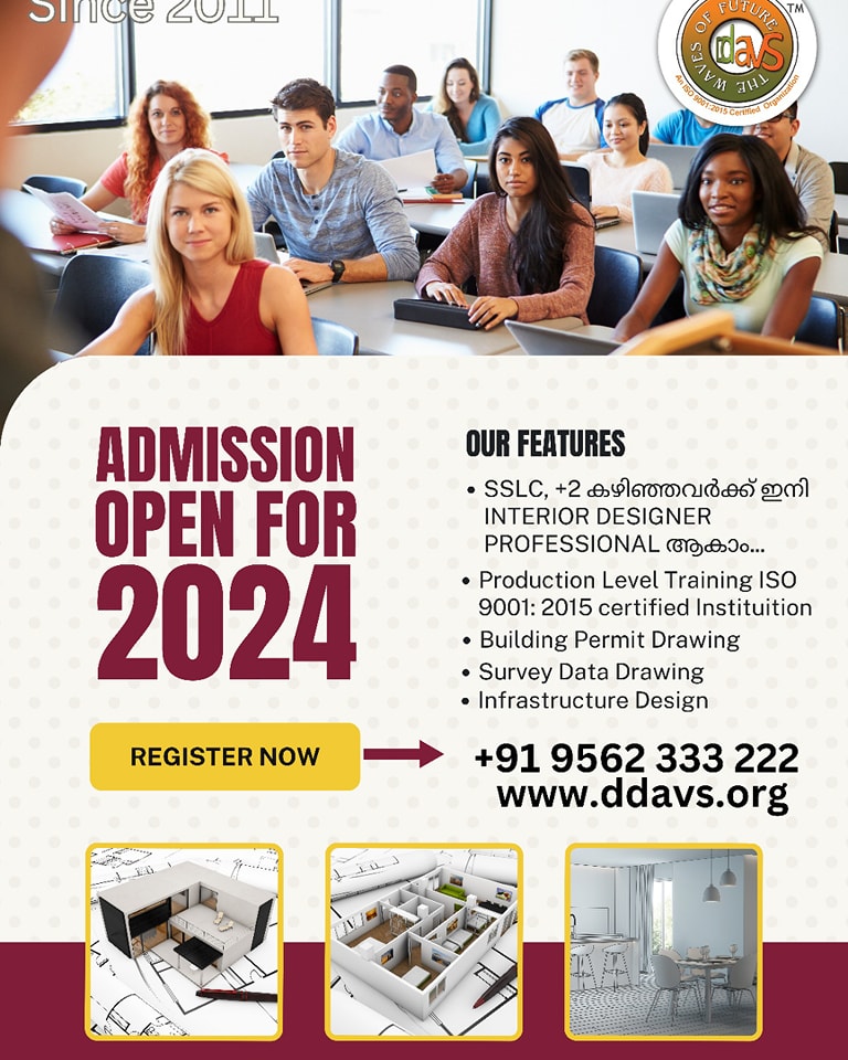 The DDAVS Institute of Interior Design, located in Kottayam, Kerala, provides a range of professional courses in interior design, 2D drafting, 3D visualization, and architectural rendering. They blend theoretical knowledge with practical, production-level training to ensure students are well-prepared for the industry. Since opening its doors around 2011, the institute has successfully placed over 800 students in design positions both in India and internationally. They also offer job-assured programs for select courses to support learners in their career journeys.