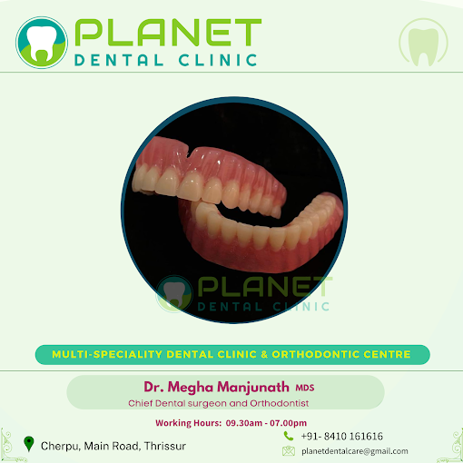 Planet Dental Clinic and Orthodontic Centre, located on Thriprayar Road in Cherpu, Thrissur, is a modern dental practice dedicated to providing comprehensive oral care and specialised orthodontic treatments. The clinic offers a full range of dental services including preventive care, cosmetic dentistry, root canal treatments, extractions, and teeth cleaning, along with advanced orthodontic solutions such as braces and clear aligners. With a focus on patient comfort and long-term dental health, the clinic combines advanced technology with personalised treatment plans to ensure effective and gentle care for every patient. Planet Dental Clinic and Orthodontic Centre is known for its professional approach, hygienic environment, and commitment to creating confident, healthy smiles for both children and adults.
