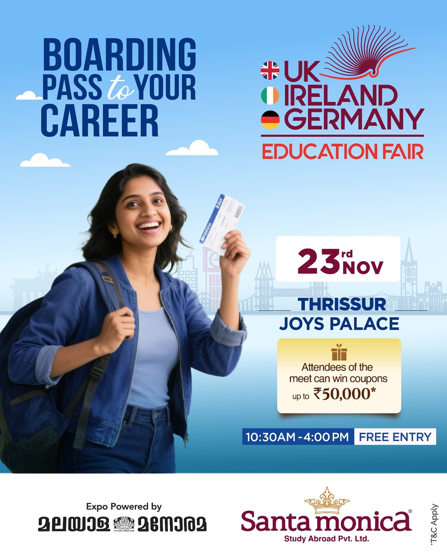 Santamonica offers comprehensive study abroad facilitation services and proudly represents over 800 top-tier universities and colleges across more than 30 countries. With branches and partner offices in nearly every district and city in Kerala, as well as key locations across India and abroad, the brand has become synonymous with quality and reliability. It supports students eager to pursue their education in the best international institutions, paving the way for remarkable academic achievements and fulfilling careers for thousands. This commitment has earned the unwavering trust and loyalty of both students and their parents.