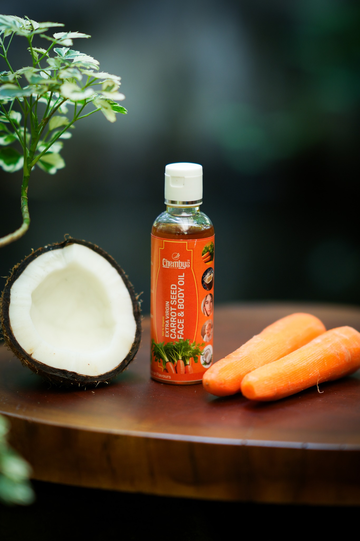 Carrot Seed Oil: Our organic carrot seed oil, often blended with coconut milk, is celebrated for its ability to brighten skin tone, combat aging, and deeply moisturize.