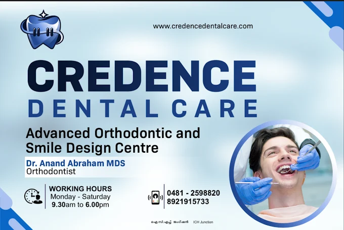 Credence Dental Care in Kottayam is a modern dental clinic that truly puts patients first, offering top-notch oral healthcare in a welcoming and clean environment. This clinic has built a reputation for its professional demeanor, friendly team, and dedication to making every visit as stress-free as possible for patients of all ages. With a tidy, well-organized space and the latest dental technology at their disposal, Credence Dental Care is committed to providing reliable and effective treatment options. They offer a comprehensive range of dental services, from general dentistry and cosmetic procedures to teeth cleaning, fillings, root canals, crowns, bridges, and preventive care. Each treatment plan is tailored to meet the unique needs of every patient, with a strong focus on safety, precision, and long-term oral health. At Credence Dental Care, Kottayam, the emphasis is on building trust through open consultations, personalized attention, and ethical treatment practices. Whether you need a routine check-up or a more complex dental procedure, the clinic is dedicated to helping you achieve a healthy, confident smile through quality care and professional expertise.