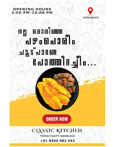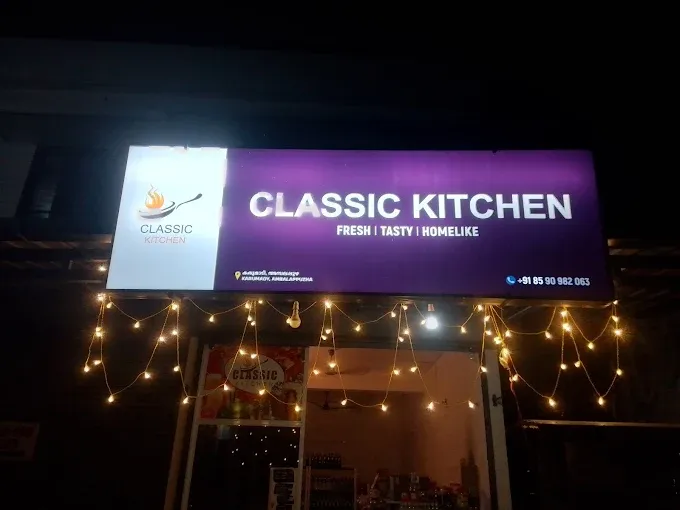 Classic Kitchen is a highly-rated restaurant nestled along Ambalappuzha-Thiruvalla Road in the vibrant heart of Kuttanad Taluk. It's celebrated for its wide-ranging menu that features both Indian and local Kerala dishes, all served in a friendly and casual atmosphere. With a solid reputation among diners, this spot offers a delightful mix of beloved traditional dishes and comforting everyday meals, all made fresh and presented with care for flavor. Guests often rave about the perfect balance of spices, generous portions, and consistent quality, making it a go-to choice for lunch and dinner in the area. The vibe at Classic Kitchen is laid-back and inviting, perfect for families, groups of friends, or anyone eager to dive into local cuisine. With its warm service and wallet-friendly prices, it attracts both locals and visitors looking for satisfying meals that don’t skimp on taste. All in all, Classic Kitchen has earned a great reputation in Kuttanad as a dependable spot for hearty, flavorful dishes in a relaxed, welcoming setting.